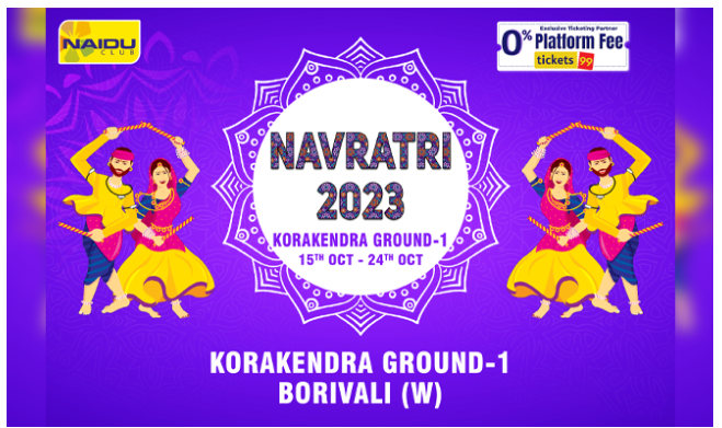 Mumbai's most awaited Navratri is back. So, guys and girls pull up your socks to dance in city's biggest and safest Navratri extravaganza. Naidu Club, synonyms for Navratri, presents its 19th edition of devotional rass-garba at Korakendra Ground-1. At Korakendra 'khelaiya's' enjoys dancing on traditional Garba with tadka and twists of rhythmist and fantabulous singers.